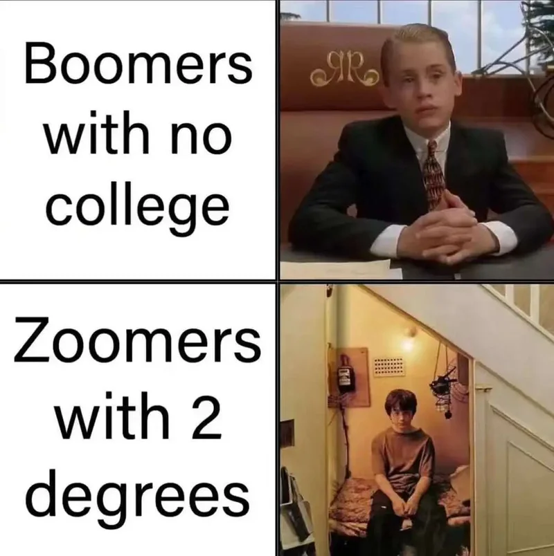 没有学历的婴儿潮一代vs拥有两个学位的Z世代