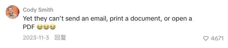 “他们到现在都没学会发邮件,打印文件,或者打开一份PDF”