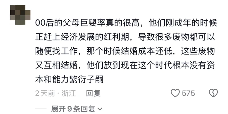 中国特色无爱婚姻向来如此,生长在如此环境下的一代人长大了,不想结婚已经是最温良的后果了。毕竟父母的样子就是年轻人对婚姻彻底失去兴趣的原因之一。