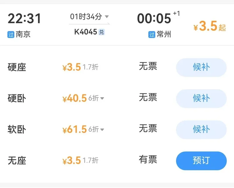 不少网友晒出的12306购票截图显示,2026年春运期间,出现了大量令人瞩目的低价票,部分火车票甚至低至1-2折,相较于平日,简直是白菜价,部分区间票更是出现了只需几元钱的情况,郑州到南京,2折后只要18元,南京到上海只要8.5元,折扣低至1.9折,南京到常州只要3.5元,低至1.7折。