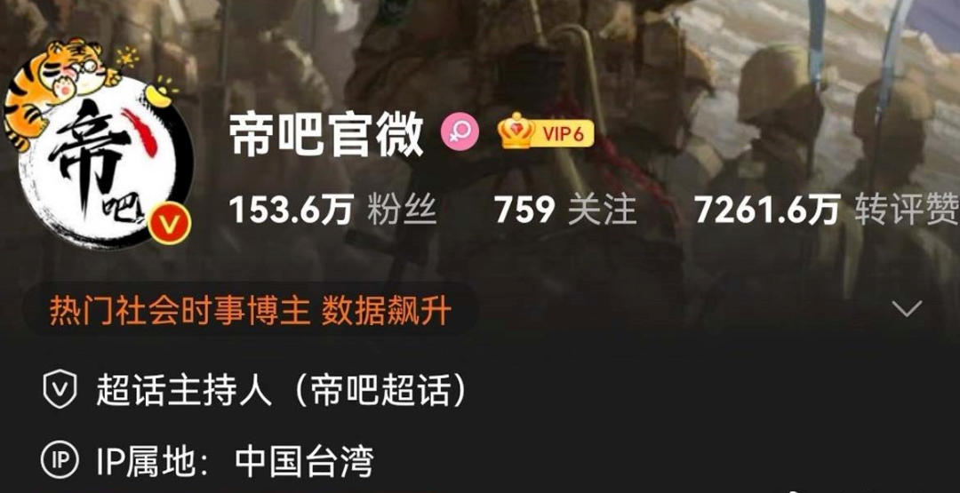 微博官方近日宣布上线展示个人账号IP属地功能,知名网络账号“帝吧官微”IP属地一度显示“台湾”,这一消息在台湾炸开了锅。