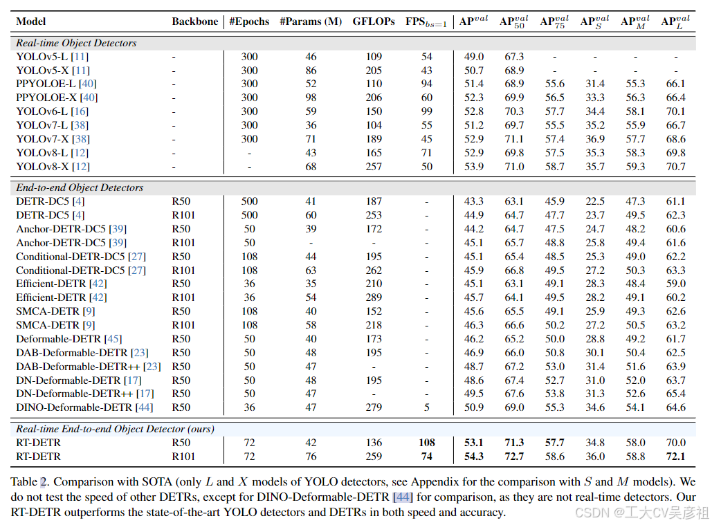 3、此外,RT-DETR 通过调整解码器层的数量来适应各种场景而无需重新训练来支持灵活的速度调整。