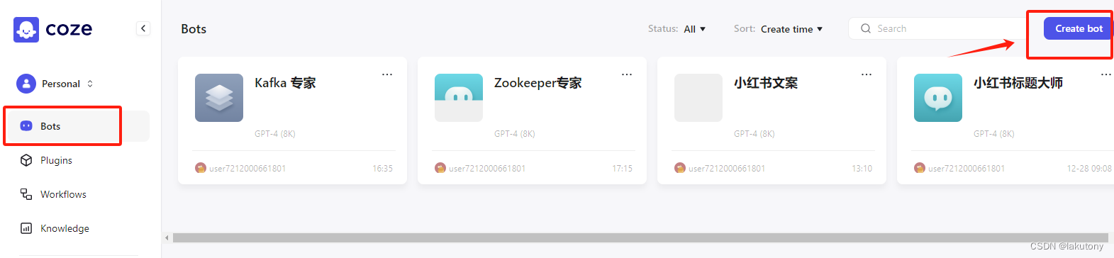 Coze是一个AI机器人平台,我们可以在这个平台创建基于不同语言模型的,属于自己的机器人,或者是直接使用别人创建好的机器人,而且机器人是支持自定义添加工作流程,知识库,数据库的!
