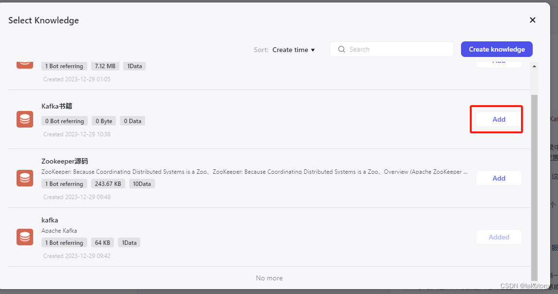 4.添加Kafka的在线文档和书籍作为知识库