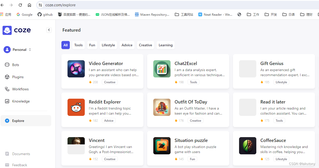 先平复激动的心情,直到昨天笔者才发现了字节跳动出的神器,Coze.com