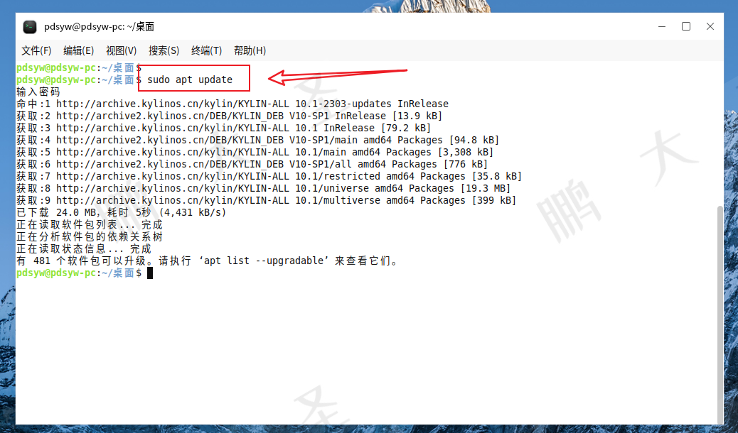 pdsyw@pdsyw-pc:~/桌面$ sudo apt update