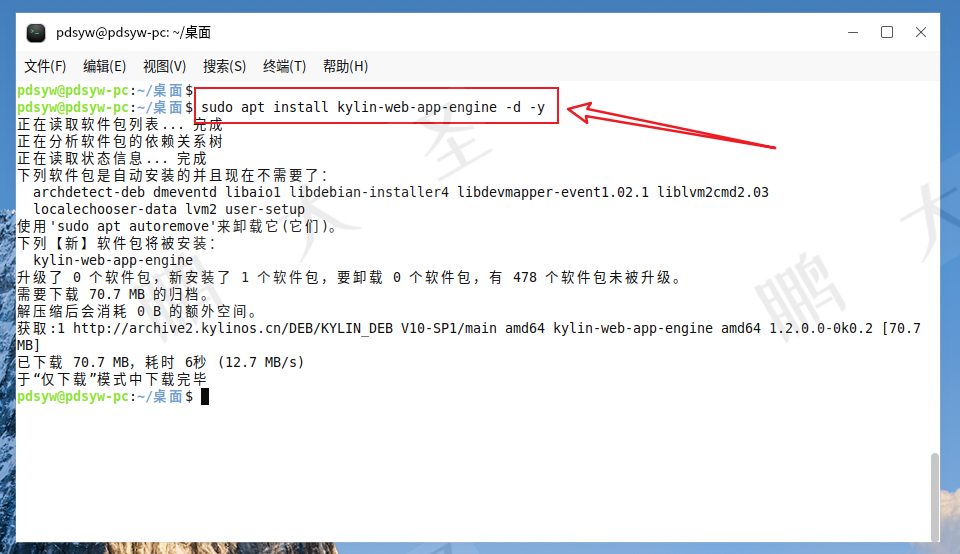 pdsyw@pdsyw-pc:~/桌面$ sudo apt install kylin-web-app-engine -d -y