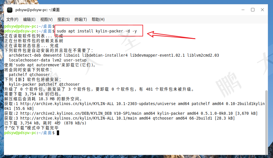 pdsyw@pdsyw-pc:~/桌面$ sudo apt install kylin-packer -d -y