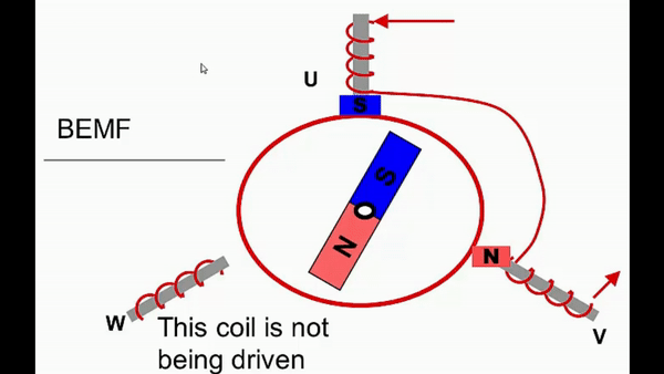 在既定电机磁通量和绕组数固定的情况下,反电动势的幅度与电机的旋转速度成正比。当电机在控制模式下运转多个换向周期直到获得一定速度后,无传感器测量便能够确定转子位置。无传感器控制的BLDC电机适合安装在难以检修的位置,或在多灰尘、多油的环境中运行,但不适合需要较低速度的应用,因为此时反电机势很小而难以测量(故其启动需要特殊方法),会造成工作效率不高。
