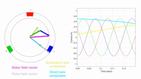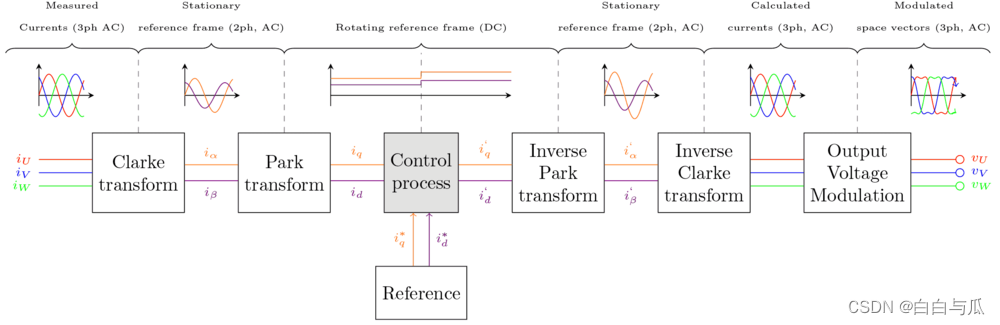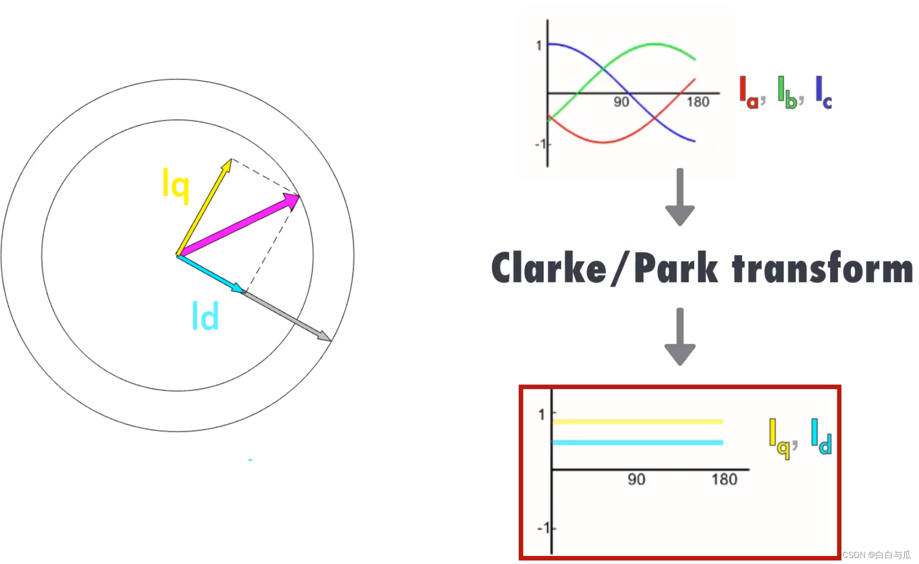 // theta = -90°,则通过 Park 变换有:Id = 0;Iq = iDC