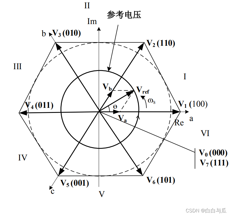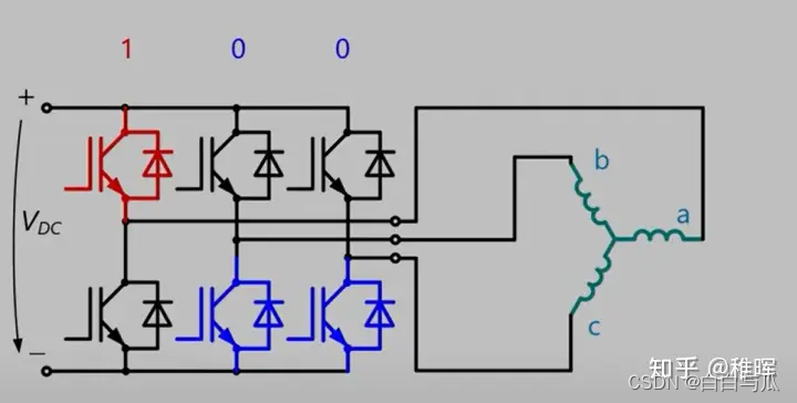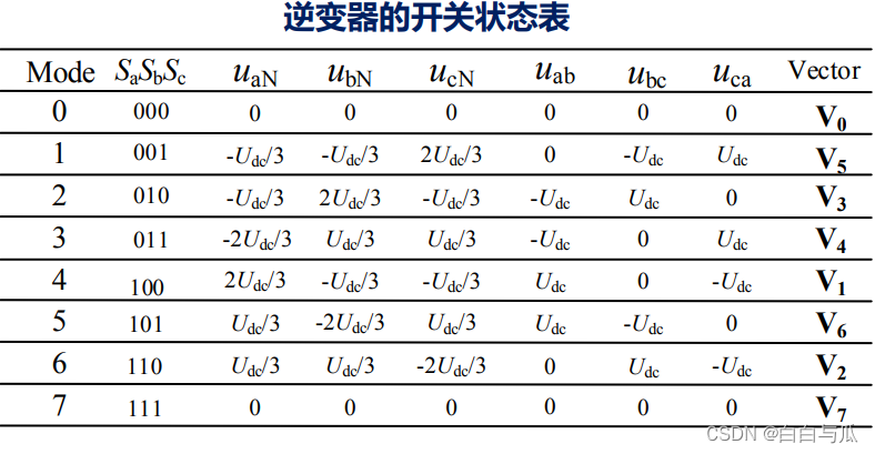 // 当转子磁链与 A 轴重合的时候,逆变器的开关状态为:SA:SB:SC—1:0:0