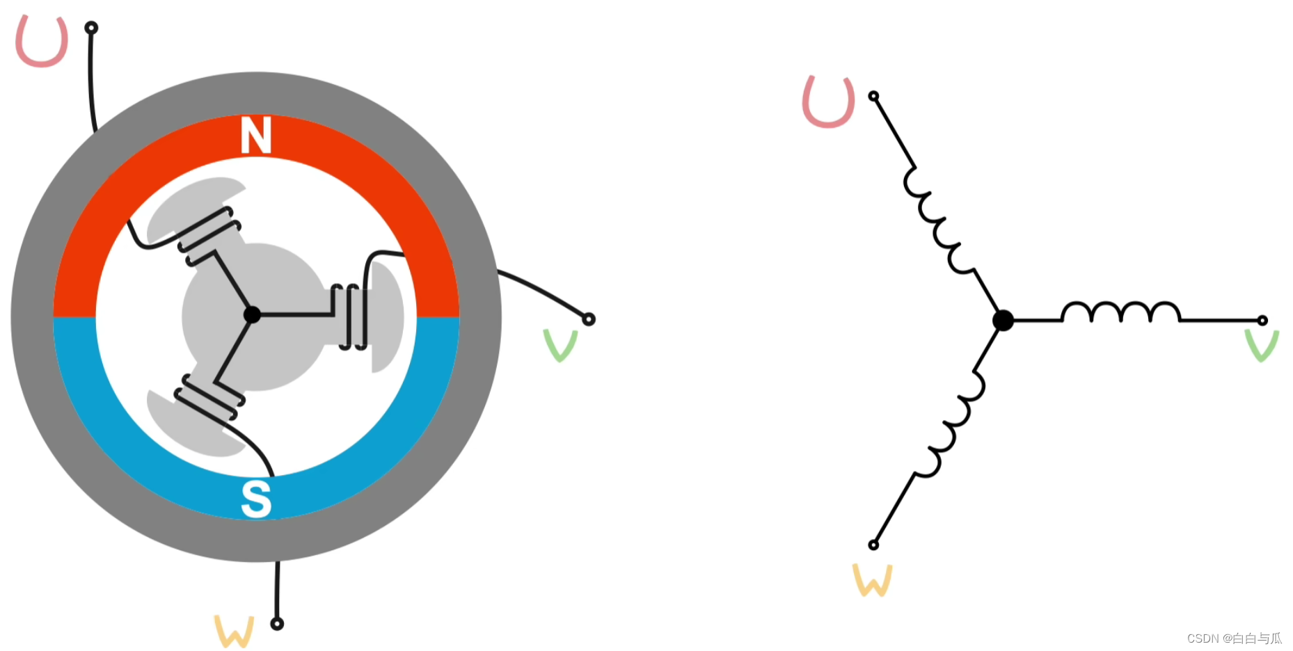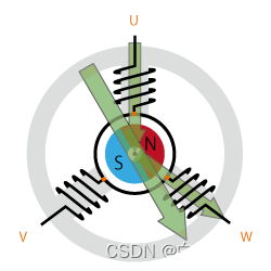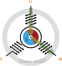 电机转动时,为了始终让转矩方向合适,需要不断切换供电相位(U、V、W三相),这个操作叫“换相”。