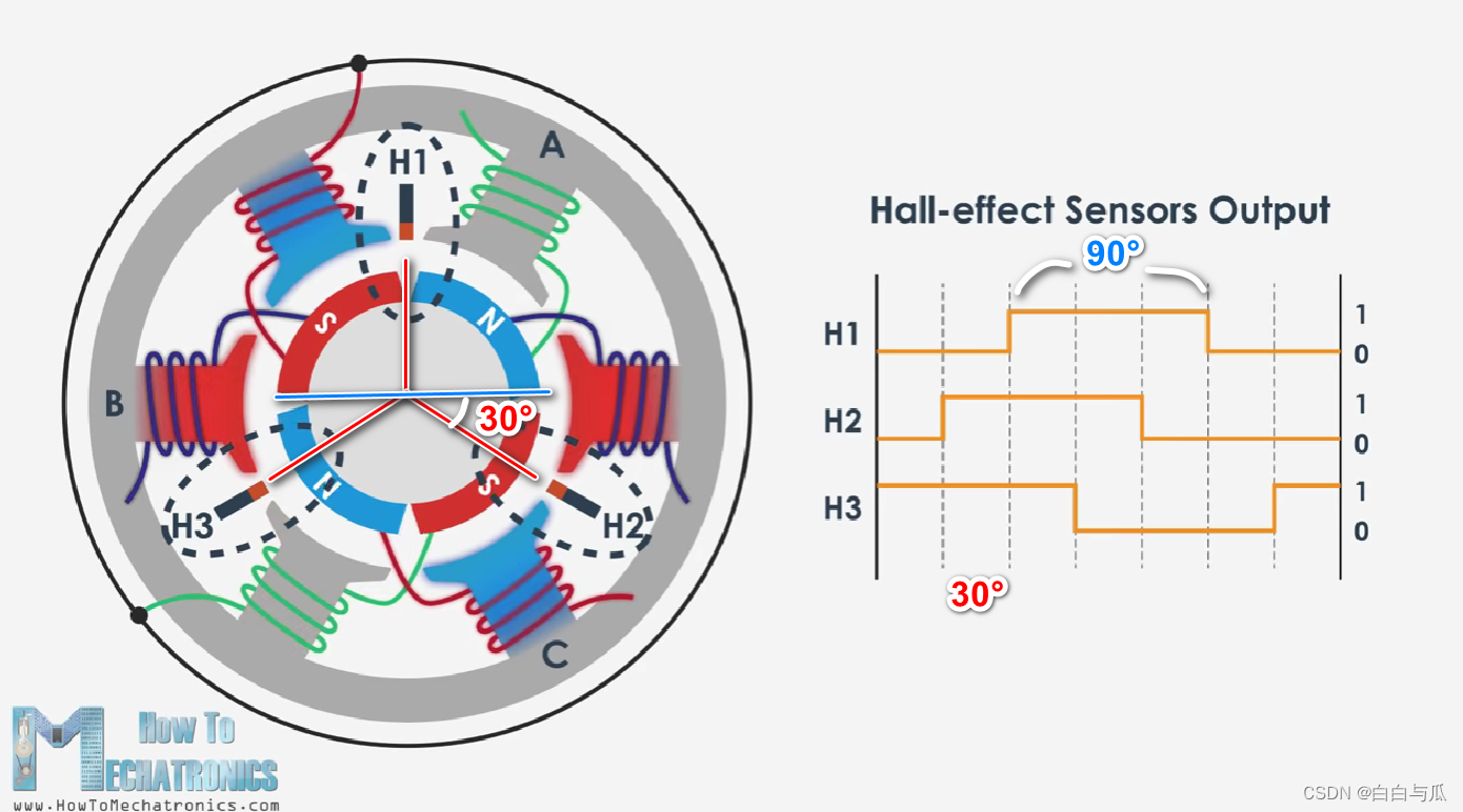 推荐先观看b站up主爱上半导体视频:无刷直流电机的工作原理,本部分作为视频笔记帮助回顾。