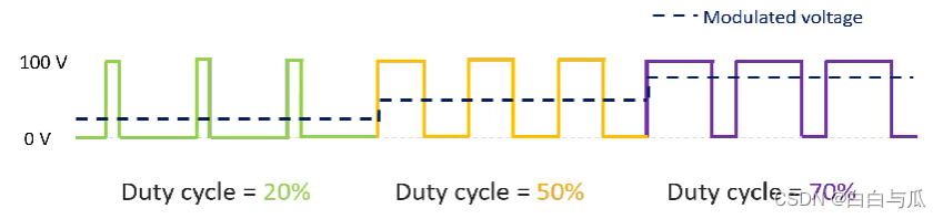 显然,占空比越高,等效输出的电压就越高。