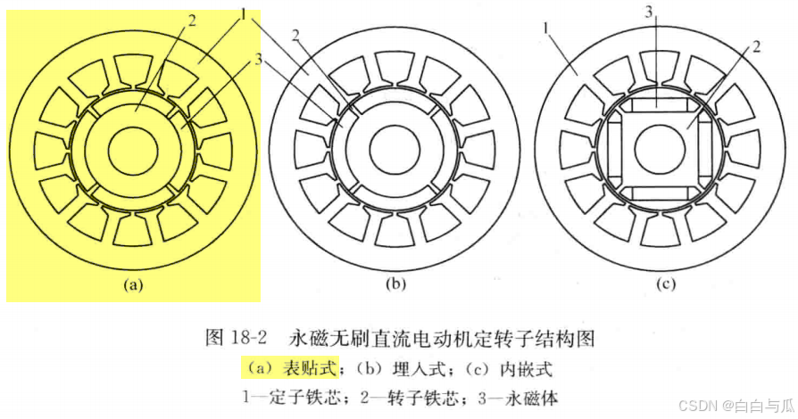 永磁有刷电机: 永磁无刷电机(内转子式):