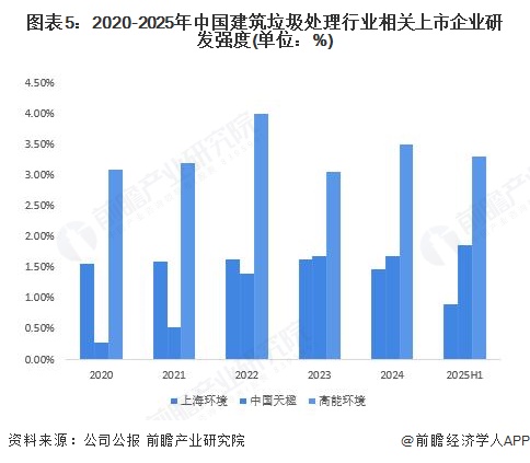 目前,中国建筑垃圾处理行业市场集中度较低。行业内存在数百家以民营企业为主的小规模处置企业,这些企业普遍规模小、产能低且利用率不足,多数甚至处于非盈利状态。同时行业技术专利申请单位分散,没有哪家企业能凭借技术或规模形成绝对垄断优势,市场呈现出较为分散的竞争格局。从整体来看,当前集中度提升幅度有限,尚未突破低集中竞争型的范畴,短期内仍会维持低集中度的行业状态。