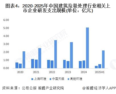 从研发力度来看,2020-2024年,行业相关上市企业研发投入支出规模总体呈现增长的趋势,但企业研发投入较少;从研发强度来看,行业相关上市企业中,高能环环境的研发强度最高,近三年均在3%以上。