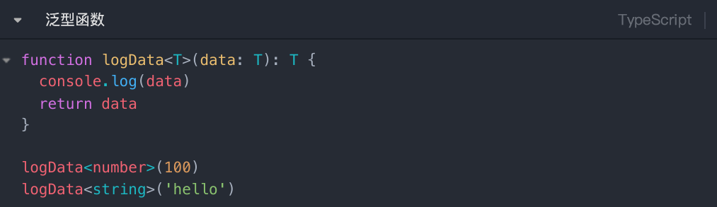 举例:如下代码中<T>就是泛型,设置泛型后即可在函数中使用T来表示该类型: