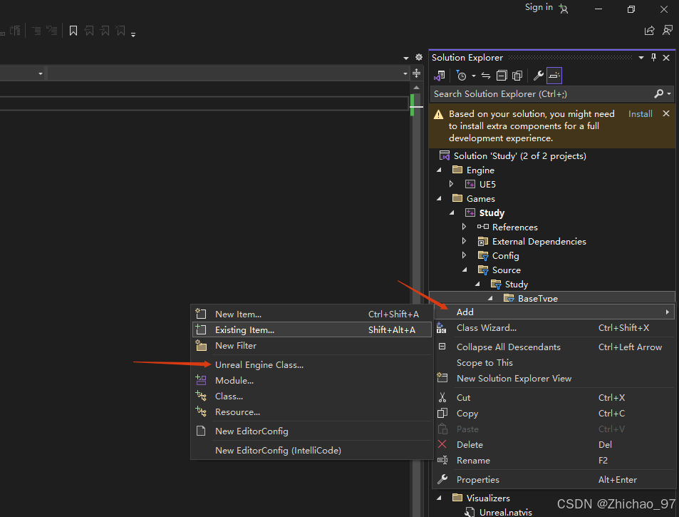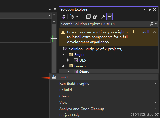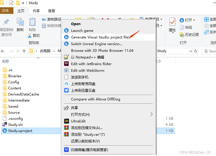 然后选中“xxx.uproject”,右键选择“Generate Visual Studio project file”
