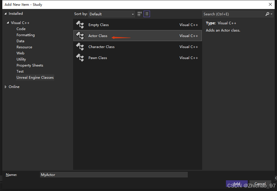 此时就创建了“XGBaseActor”类的头文件和源文件
