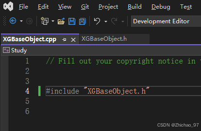 打开头文件“XGBaseObject1.h”,添加如下代码。代码的意思为定义一个名为UXGBaseObject1的UObject类的头文件代码。这个类是所有虚幻引擎对象的基类,通过继承UObject,UXGBaseObject1可以利用虚幻引擎的反射系统、垃圾回收机制以及其他面向对象的特性。