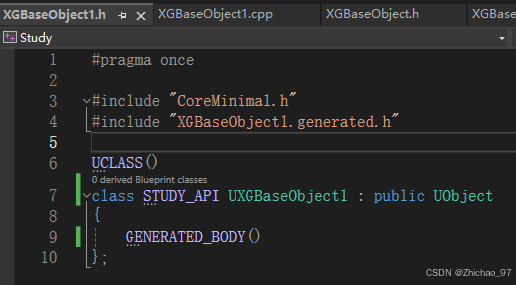 class STUDY_API UXGBaseObject1 : public UObject:- 定义了