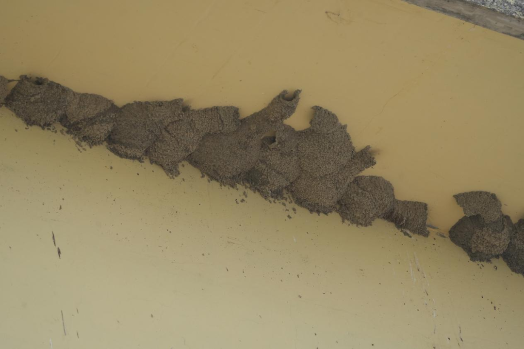 春夏季节里,金腰燕和家燕两个物种在我国北方均有繁殖。它们的巢常常坐落于民居的屋檐下面。二者的巢型也有很大的区别:家燕的巢是开放型的碗状巢,开口向上;
