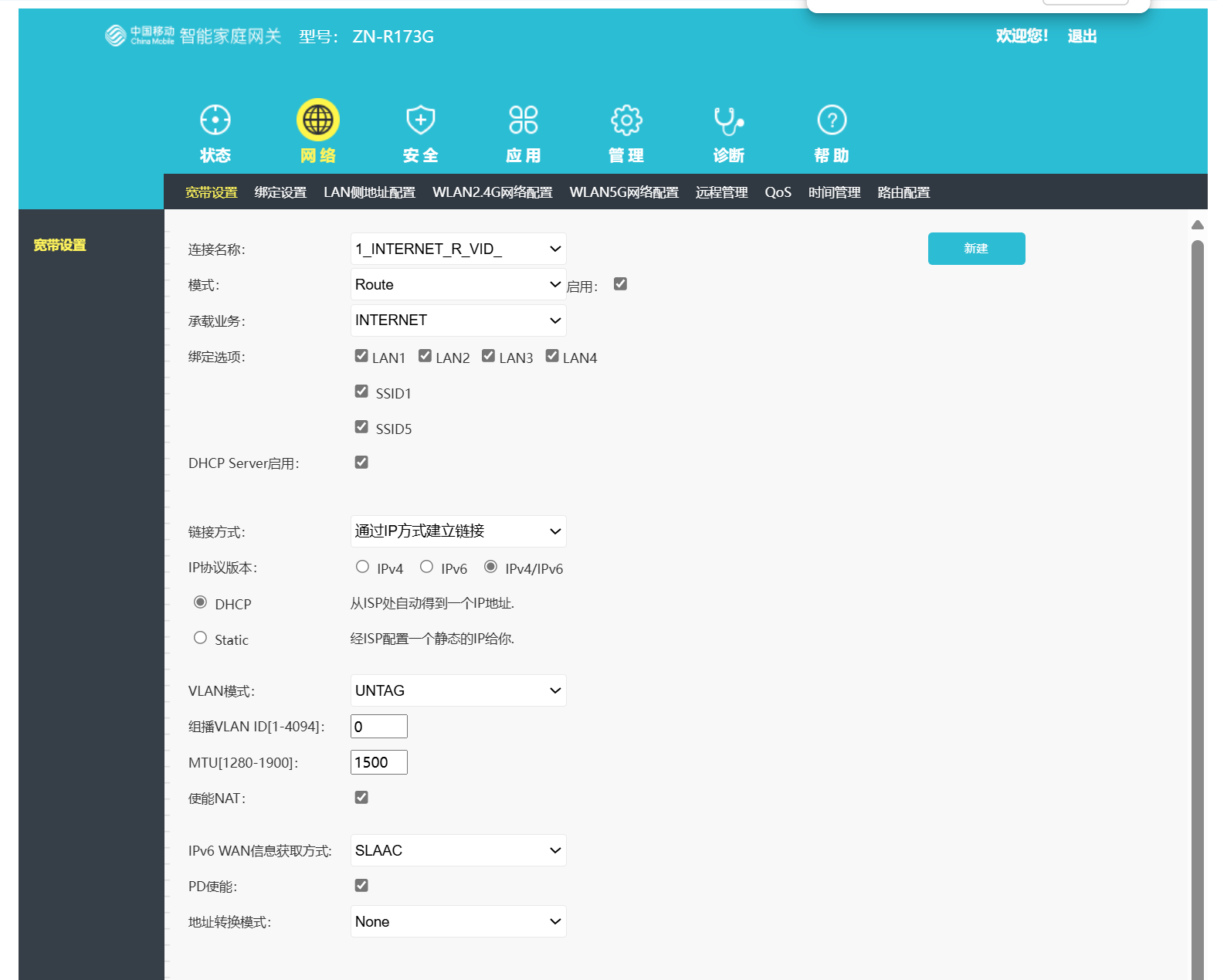 然后在新建Internet连接,设置如下,其他连接都删除。