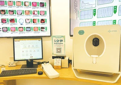 同仁堂国际智慧健康体验中心的中医智能四诊仪。王一淳 摄