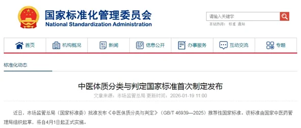 【文/观察者网专栏作者 岑少宇】今年1月,《中医体质分类与判定》国家标准(GB/T 46939-2025)由国家市场监督管理总局(国家标准化管理委员会)正式发布,可以说,这是中医体质辨识标准化的重要一步。不过很多人不知道的是,体质标准化早已开始。2009年4月9日,我国第一部《中医体质分类与判定》(ZYYXH-2009)标准就已正式发布。