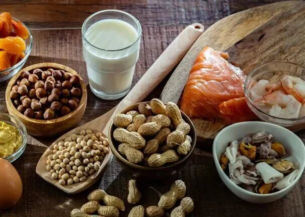 可能造成过敏的食物种类五花八门,但总的来说集中在含有麸质的谷物、甲壳类动物、鸡蛋、鱼类、牛奶、花生、大豆和坚果,这八类食物基本上涵盖了90%以上的过敏原[7]。