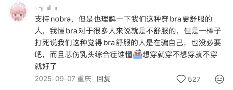其次,一部分人在纠结要不要穿钢圈的时候,已经有女孩开始no bra了——