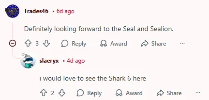 “非常期待海豹和海狮。”“我希望在这里看到鲨鱼6。”
