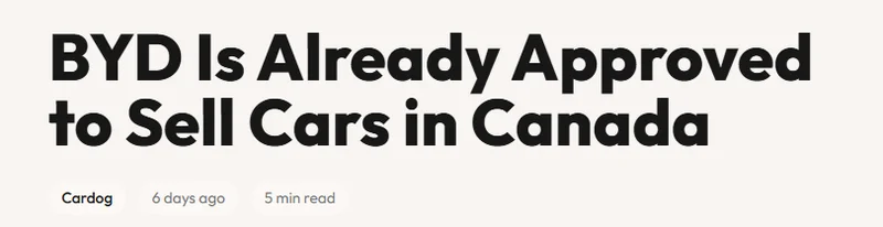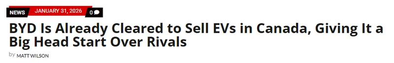 参考阅读:https://driveteslacanada.ca/news/byd-is-already-cleared-to-sell-evs-in-canada-giving-it-a-big-head-start-over-rivals/https://www.reddit.com/r/EVCanada/comments/1qnyuux/byd_is_already_approved_to_sell_cars_in_canada/