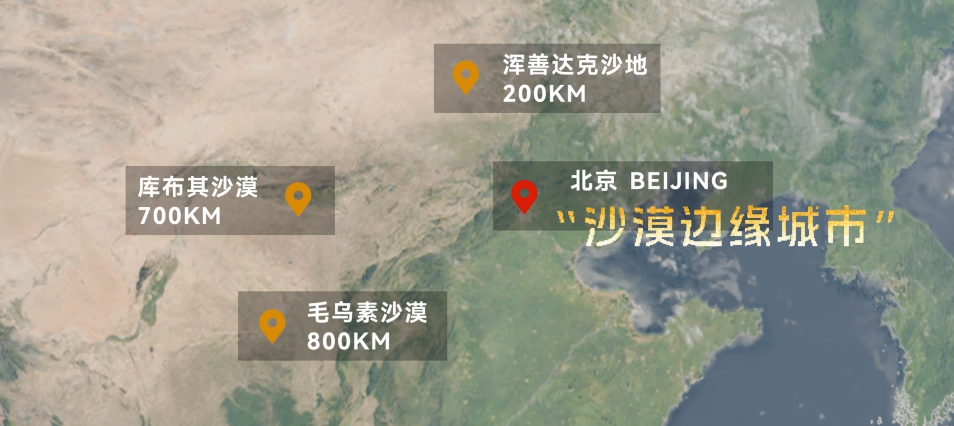 1977 年,在联合国防治沙漠化会议上发生了一件大事,北京,被列为 “ 沙漠边缘城市 ”。当时,毛乌素沙漠,距离北京 800 公里,库布其沙漠,距离北京 700 公里,浑善达克沙地,距离北京 200 公里。