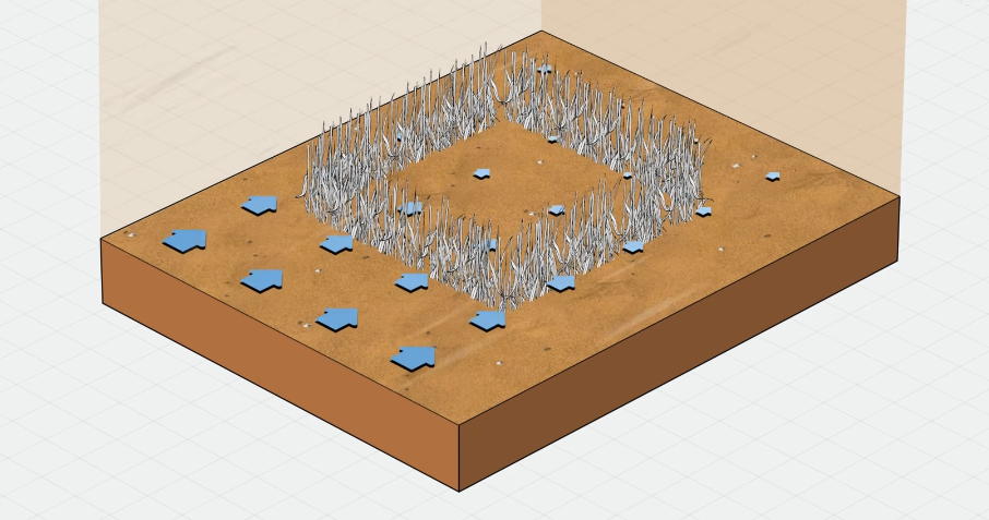 如果按照传统思路,要阻挡风沙就得种树,但因为移动的沙丘和极度贫瘠的水资源,又没办法种树……相当于死循环了!