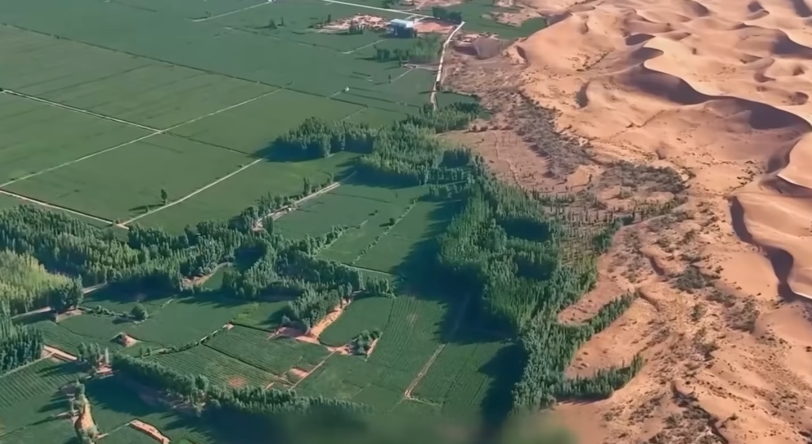 像是最近已经完成的,塔克拉玛干沙漠边缘锁边工程,就是三北工程的标志性重点战役之一。