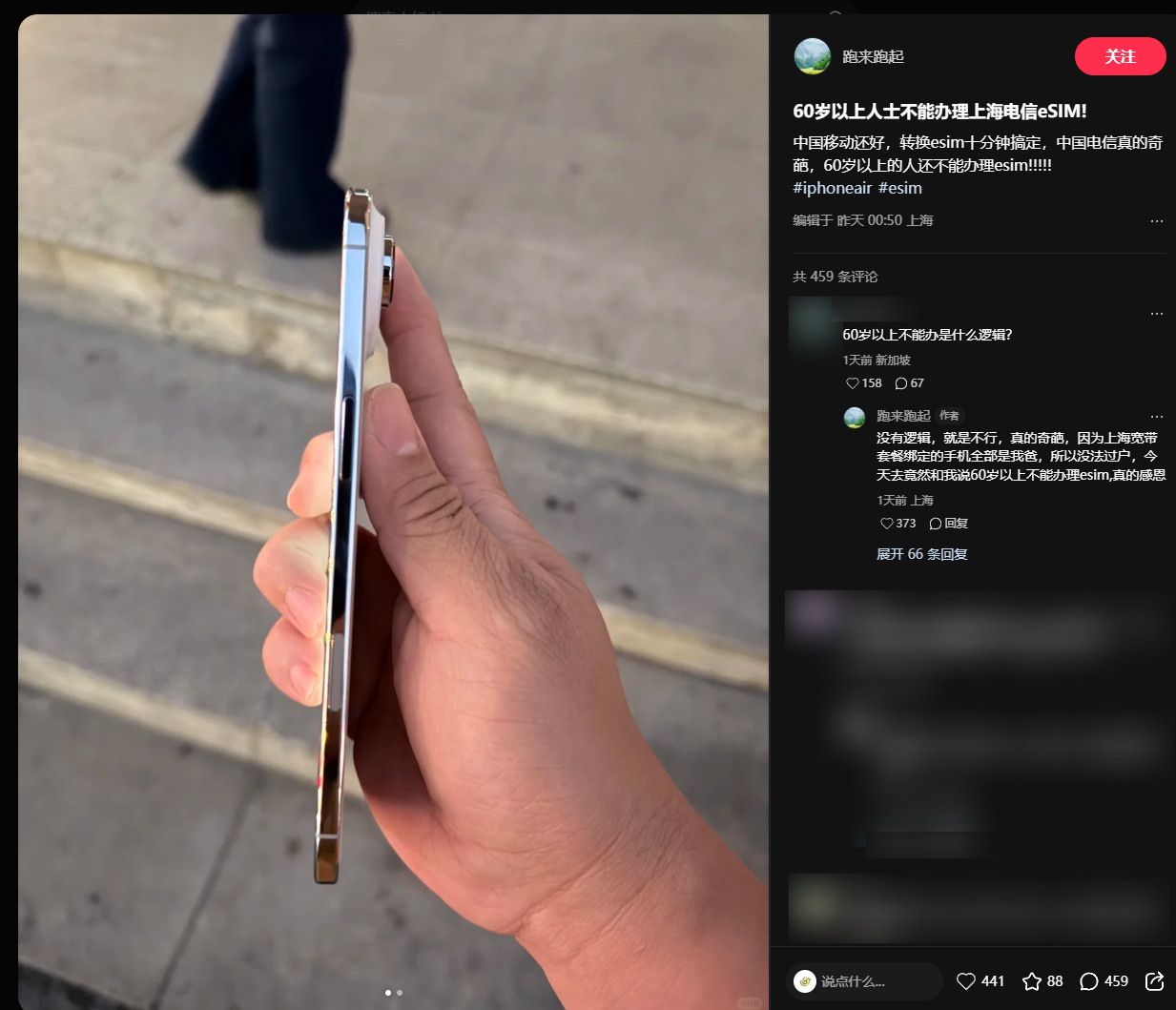 根据苹果中国官网,中国移动、中国电信和中国联通均可为iPhone Air国行版提供eSIM支持。