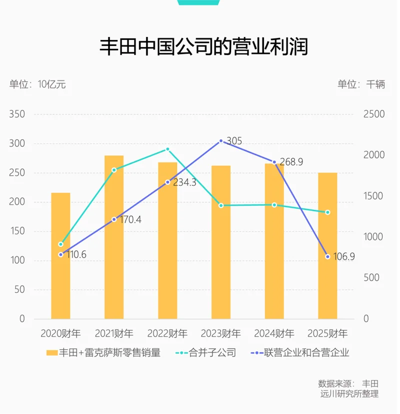 中国销量虽然稳住了下滑趋势,但中国市场收入下滑也是不争的事实。相比2023财年,包括一汽丰田、广汽丰田两家车企在内的合营企业,贡献的利润只剩下当年的三分之一。