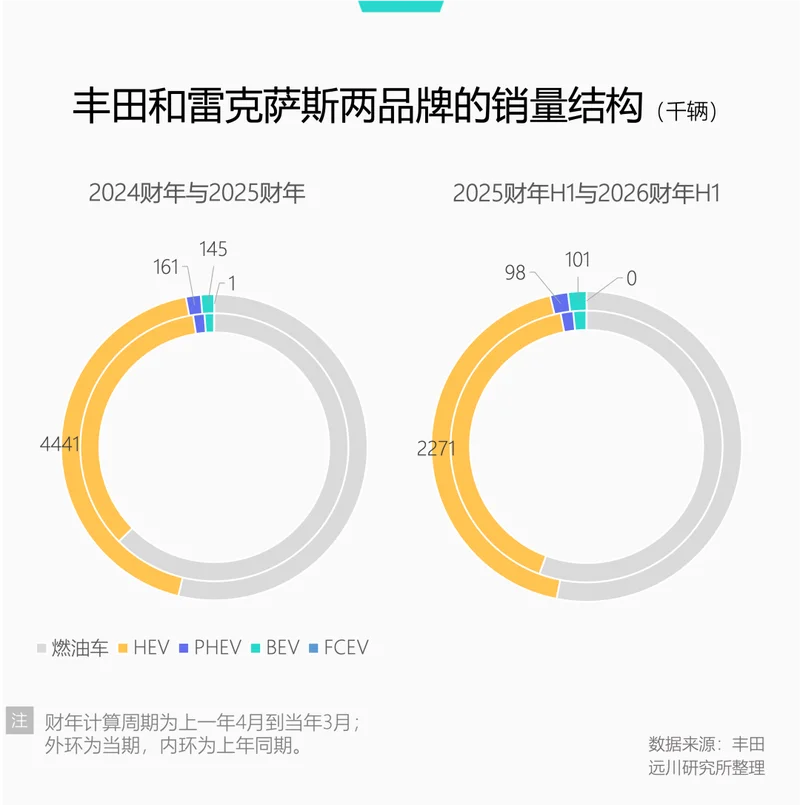 也就是说,丰田看似没卖多少新能源车,但“半新不旧”的HEV却卖了不少。