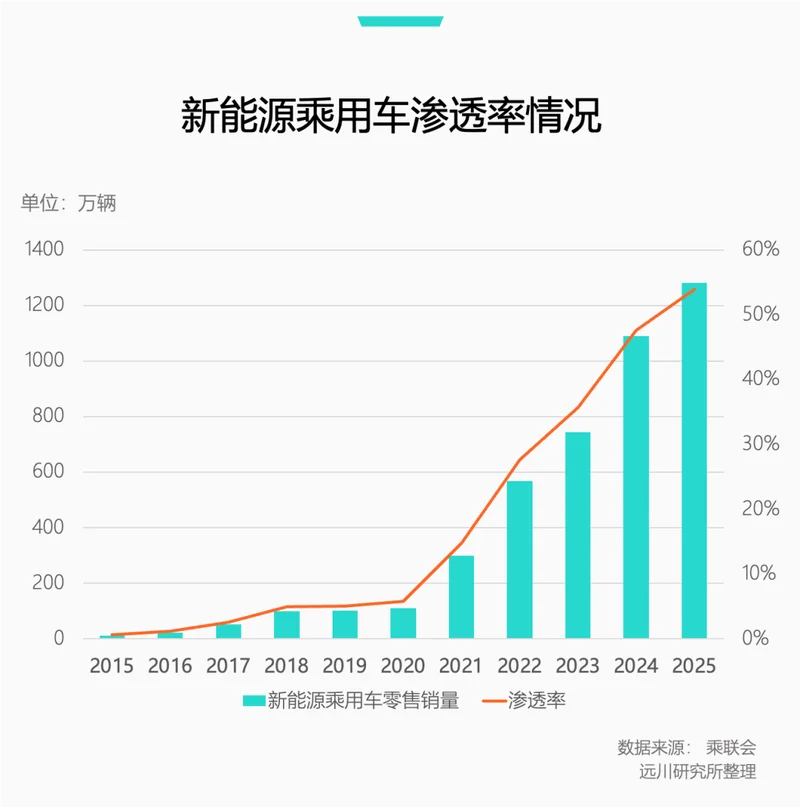 2022年新能源市场大爆发后,中国和欧美市场逐渐分化。中国新能源车渗透率迅速提高,至2025年已经突破50%。但欧洲市场,新能源车后劲不足;美国市场特斯拉独木难支,纯电渗透率至今不到10%。