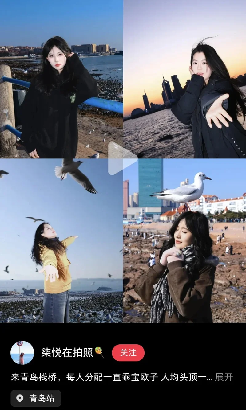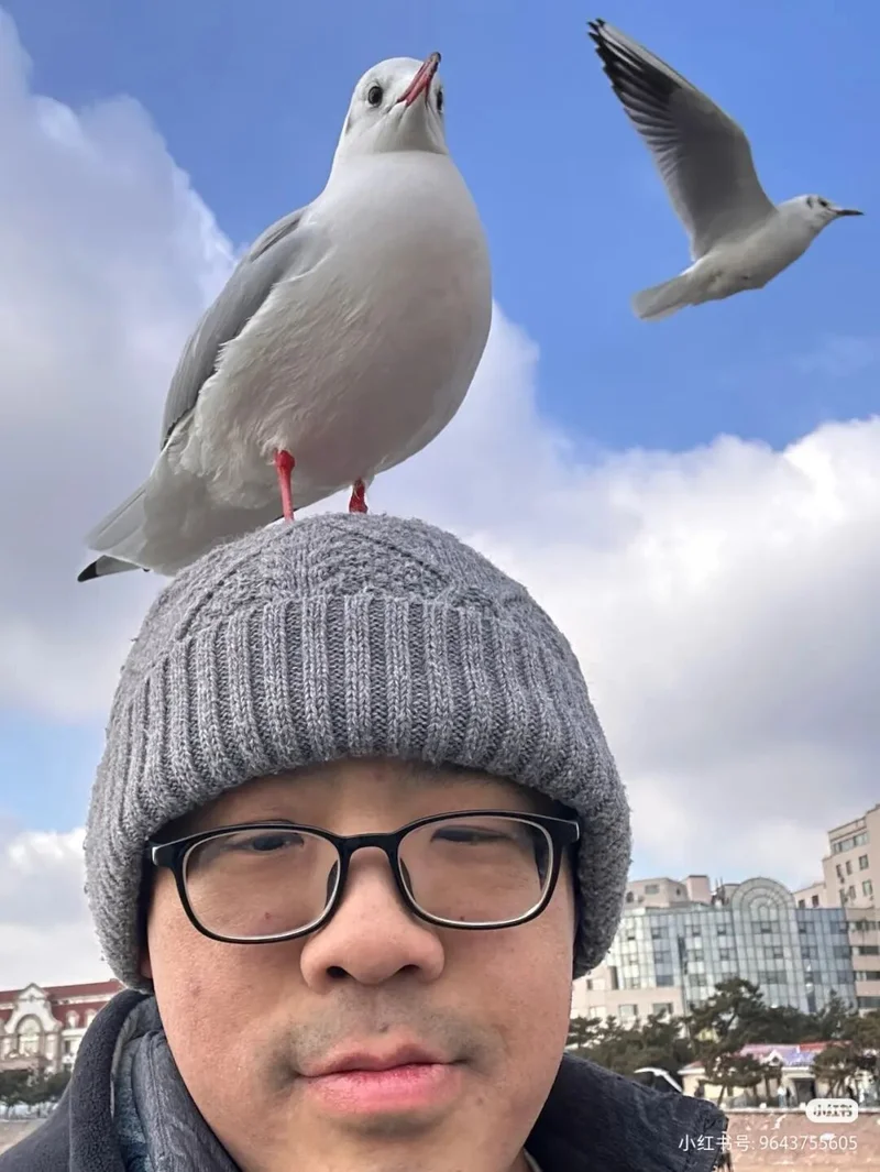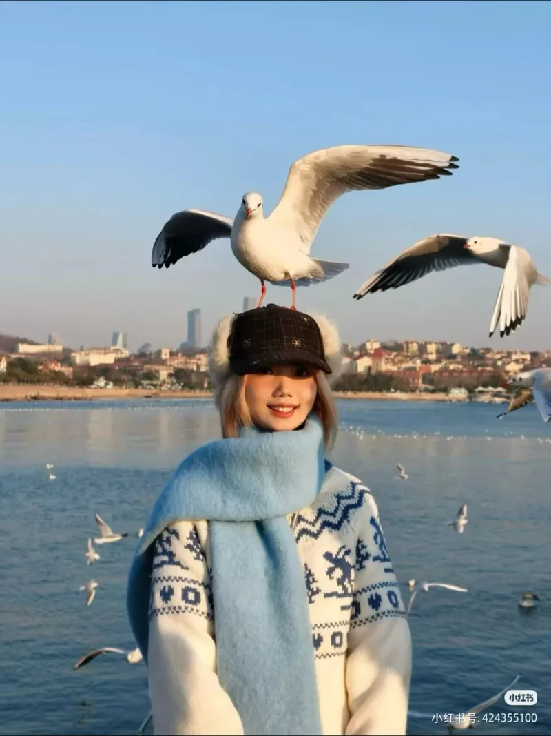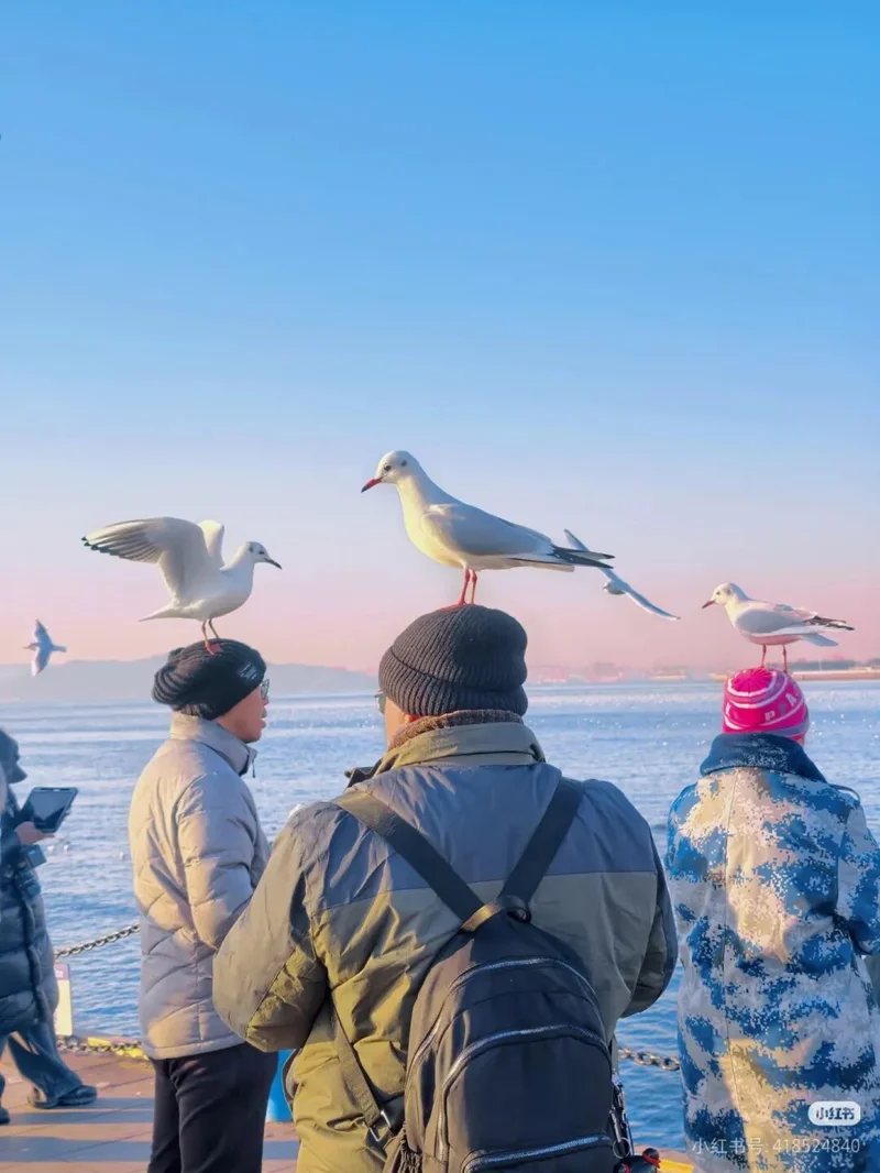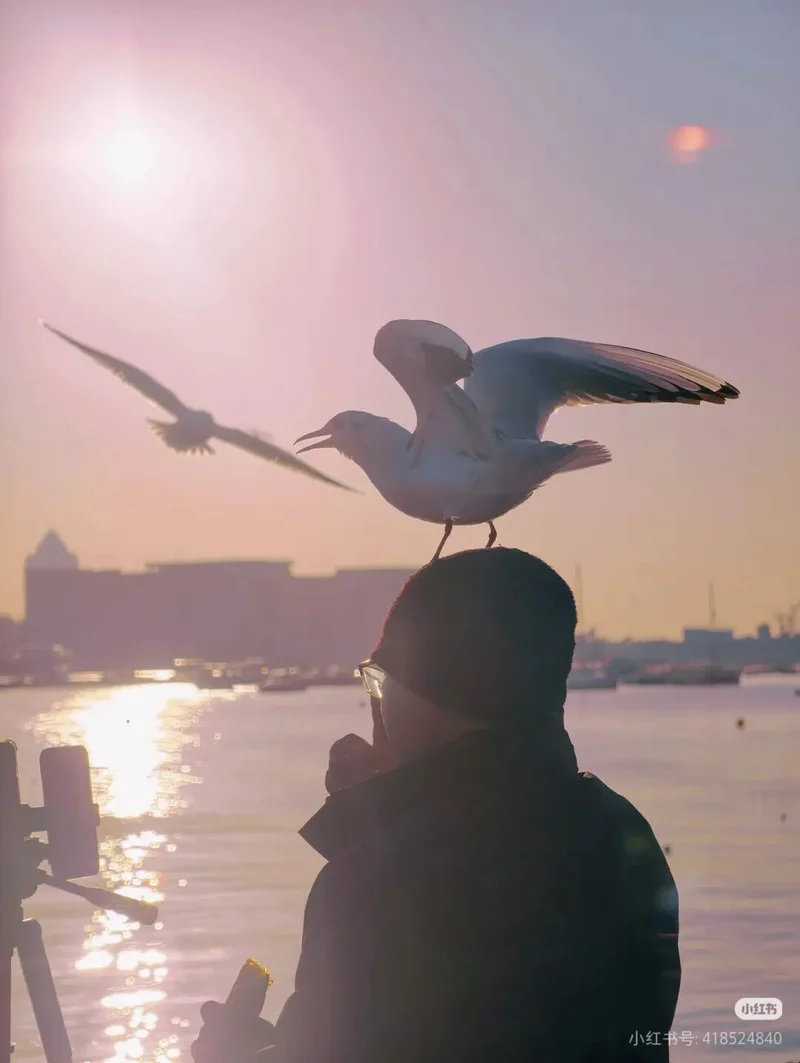 这是青岛冬日最硬的一首诗,它甚至不需要文字,它只需要一个不怕脏的肩膀,和一个愿意被小家伙占领的脑袋。在那一刻,你终于明白,所谓的万物灵长,在海鸥眼里,不过是一个恒温的、好用的、偶尔还会掉馒头屑的底座罢了。