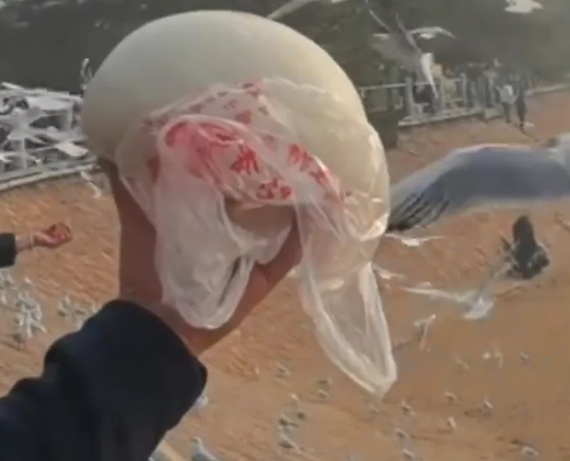 代表人物李视昌,也就是传说中的栈桥鸥爸。这位大哥每天早晨准时出现在栈桥,兜里揣着几十根油条。他不需要主动推销,只要把那顶标志性的帽子一甩,张开双臂,嘴里喊着带有某种魔幻号召力的词汇,那场面比《权利的游戏》里的龙妈还要魔幻。