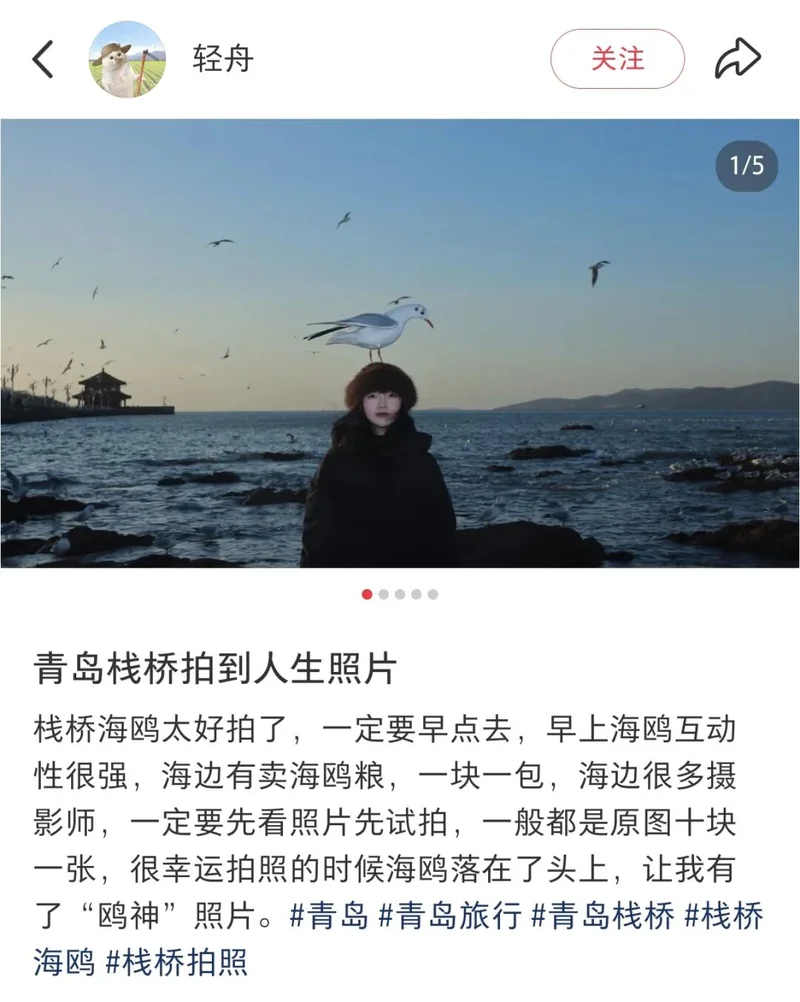 在互联网的叙事里,去青岛栈桥要是不被海鸥踩一下头,这趟旅行基本上算瞎了。