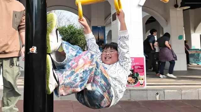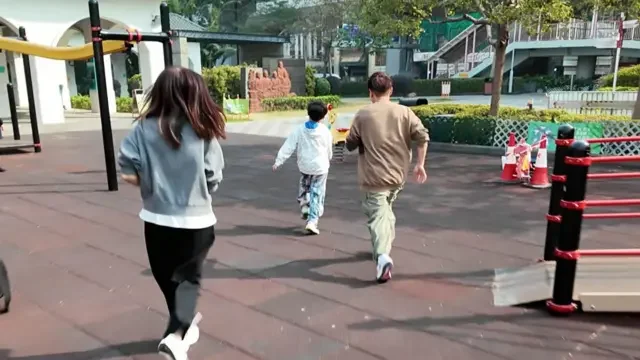 1月中旬,一家三口返港放暑假。我们约在港岛区一个公园见面,Aiden一看到公园的玩乐设施,马上大嚷道:“我要玩”。