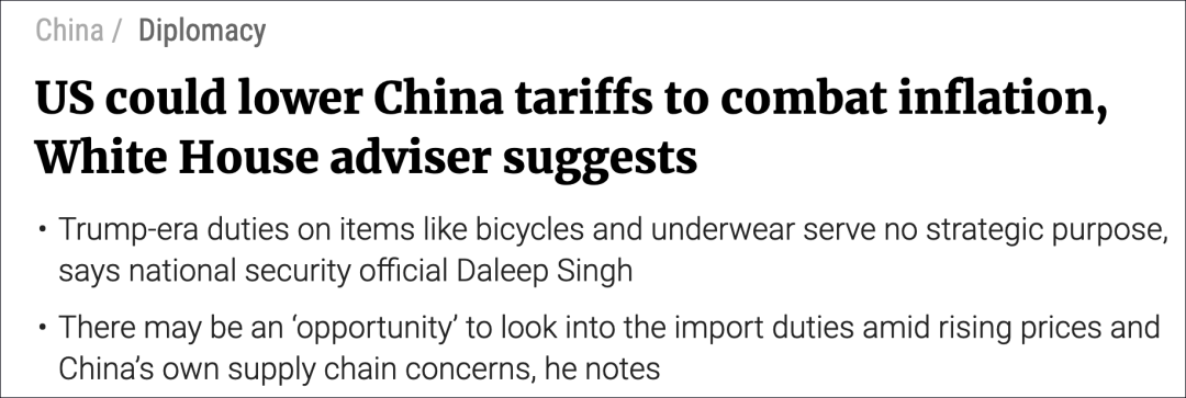《南华早报》:白宫顾问建议降低对华关税,以抑制国内通胀