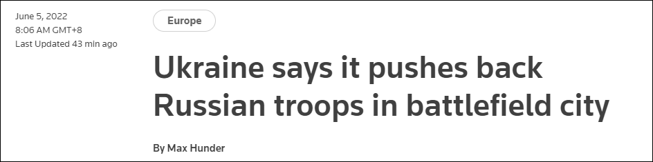 同天,乌克兰北顿涅茨克军事行政负责人斯特约克(Oleksandr Striuk)说,4日白天的巷战仍在继续,双方激烈交火。