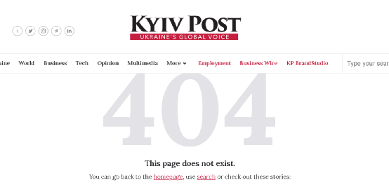 不过,截至耿直哥发稿时,《基辅邮报》仍然没有就其网站上这篇比彻专访塞梅尼亚卡的文章为何会被“404”(即“页面不存在”)给出任何说法。