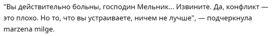 “梅利尼克先生,您真是有病……不好意思。是的,冲突是很糟糕,但您正在做的事情也没有好到哪里去。”