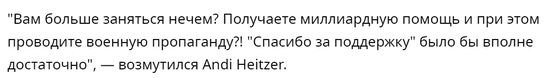 “您是没事干了吗?你们获得十亿援助的同时,还在进行军事宣传?!只需要说声‘谢谢支持’就足够了。”
